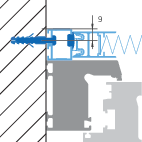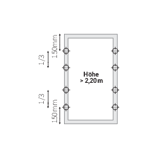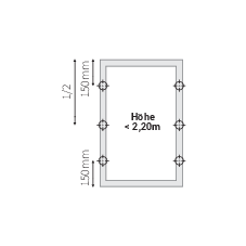 Bei Varianten mit 3-seitigem Einbaurahmen entfallen die Befestigungen an der Unterseite.