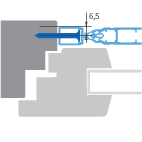 Knopfgriff mit BohrungArt.Nr.: 3065 Freie Positionierung nach Wunsch. Knopfgriff wird mit Schrauben lose beigefügt. ClipsgriffArt.Nr.: 3300 Direkt auf der Sprosse 1228 angebracht. Einbautiefe beachten.